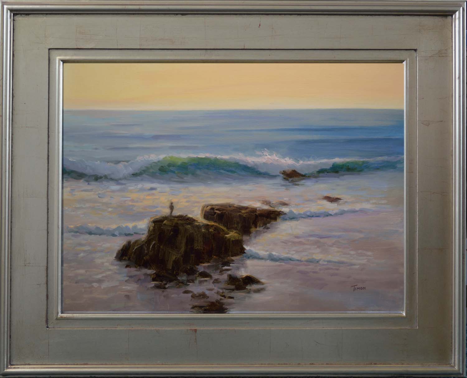I was out painting on the coast all day, and as the started to set it started to light the foam off the waves with a magical glow.