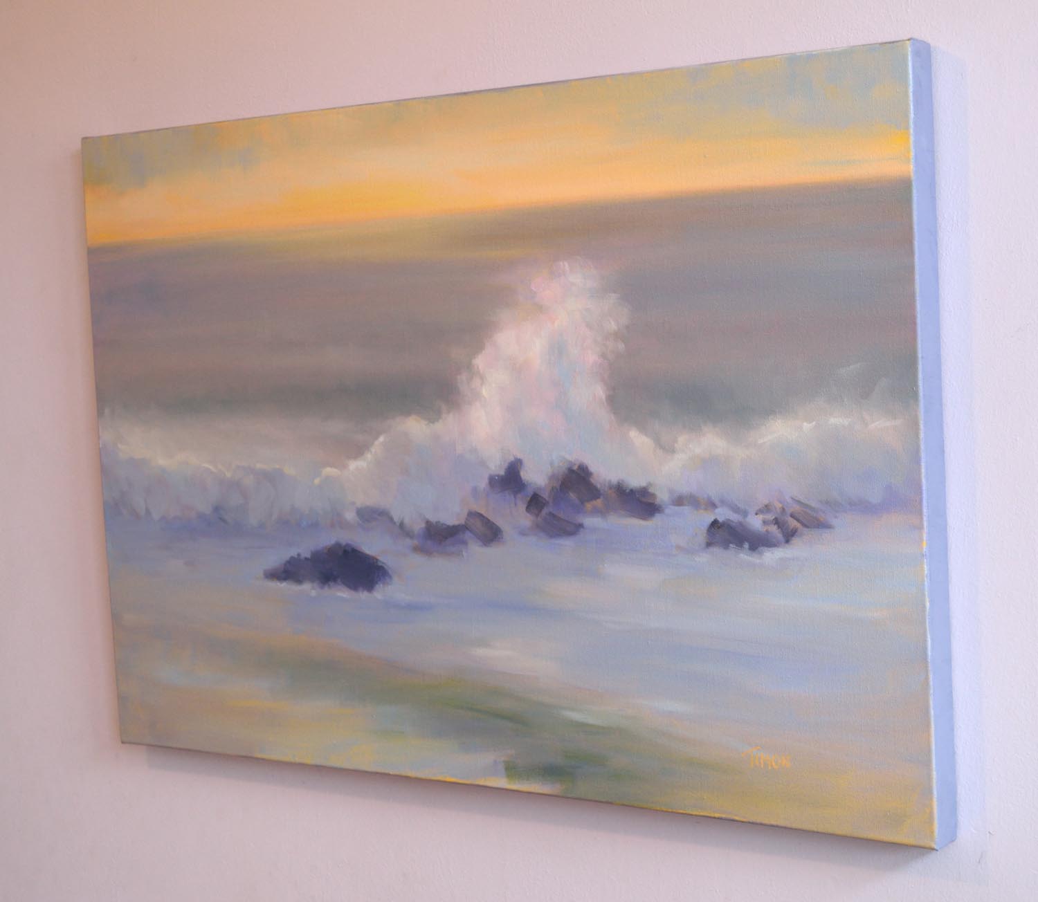 Oil on canvas. This museum wrapped piece (1.5 inches deep) is designed to be hung without a frame.