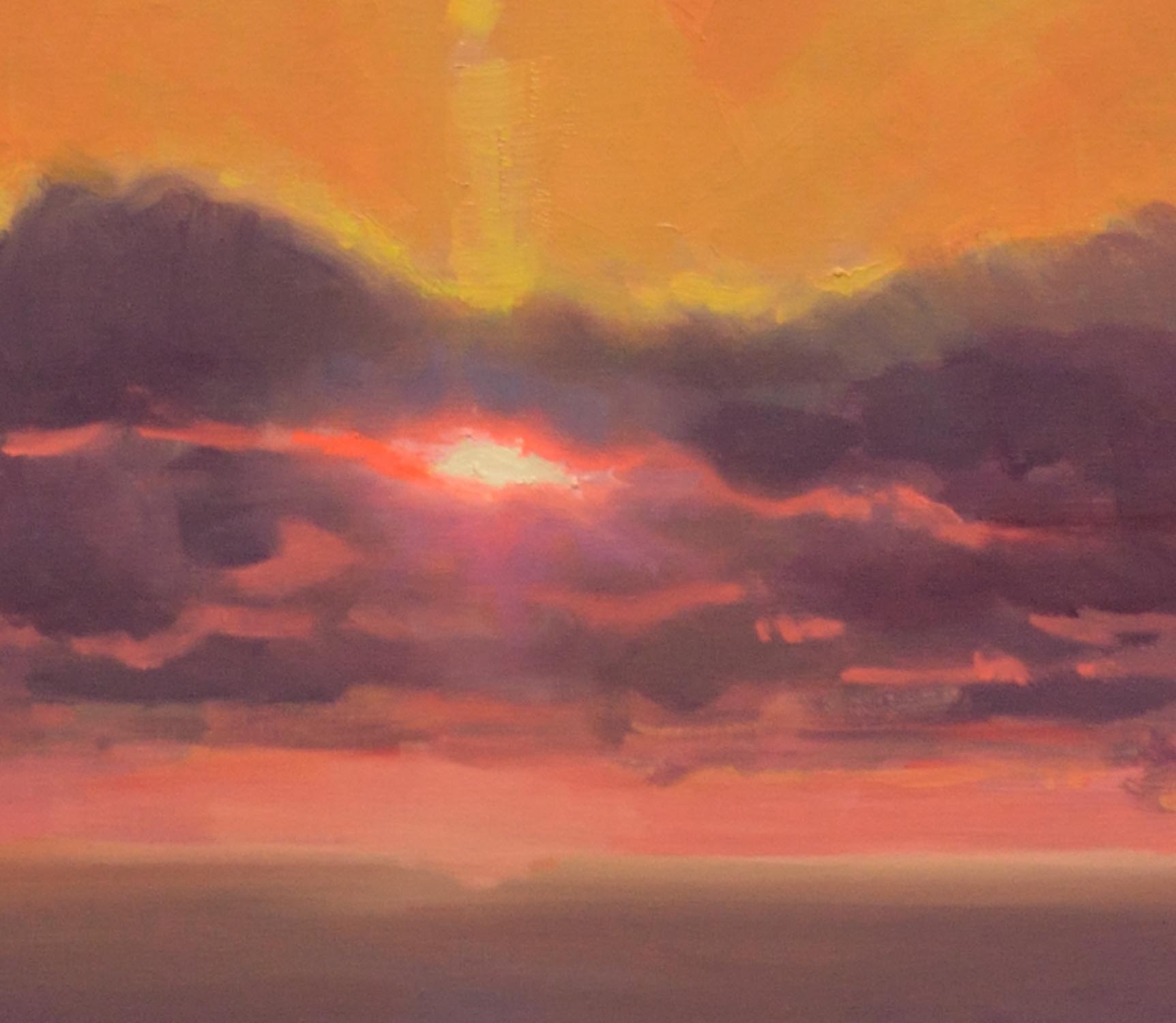 Oil on linen stretched on 1.5 inch deep stretcher bars. Painted sides. Designed to be hung unframed.