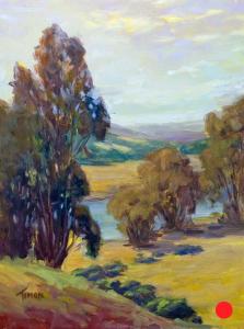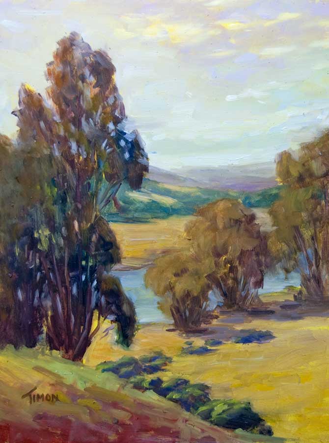 This is a classic California view, with the eucalyptus trees and the golden rolling hills.