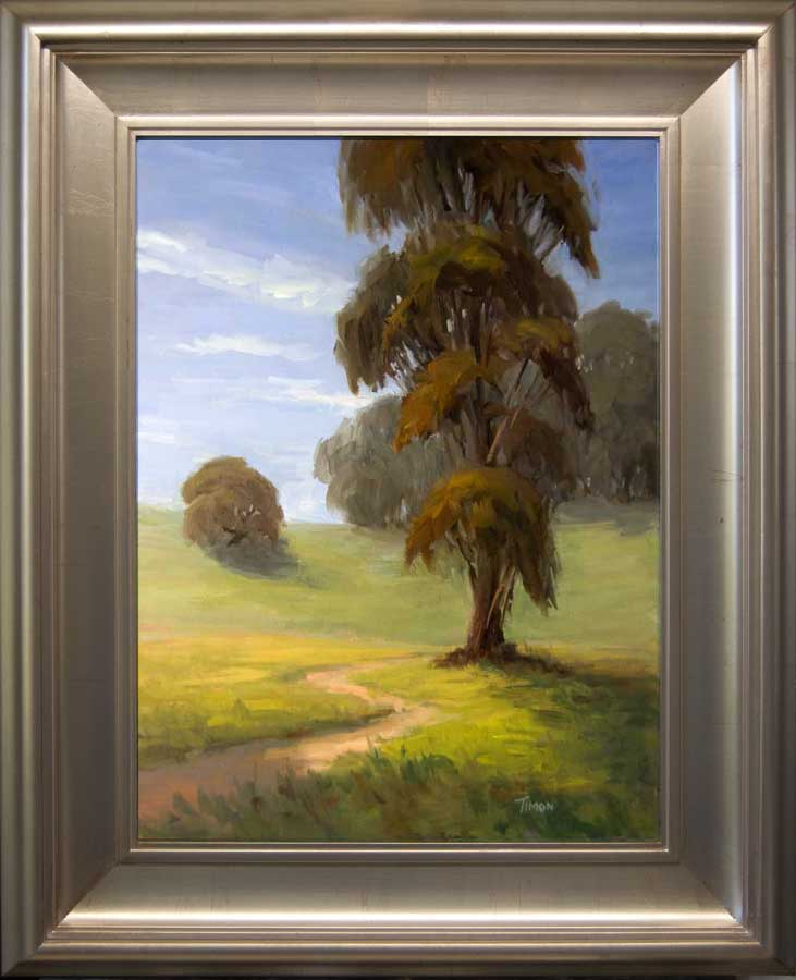 Oil on stretched linen, this piece is in a beautiful hand leafed warm silver frame.