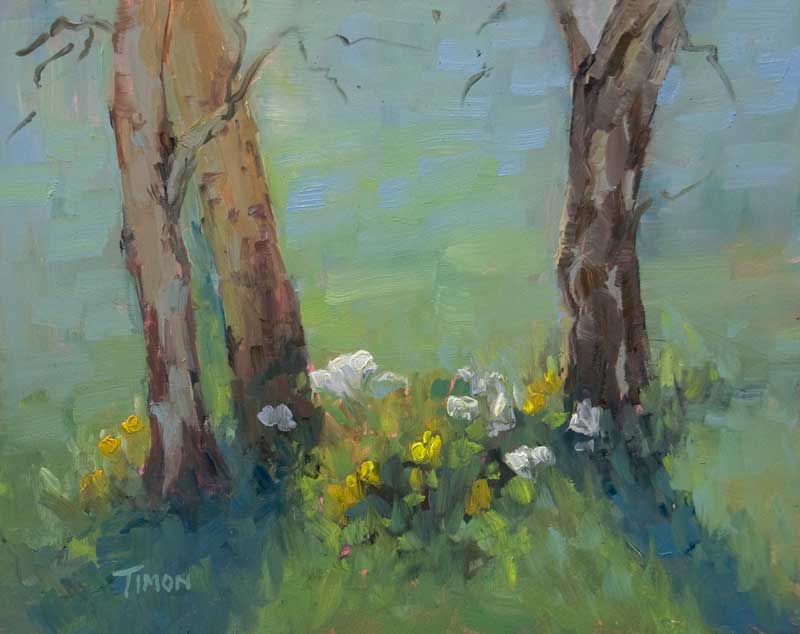 I painting this right outside my front door one day. I had planned to take a long drive to the coast to paint, but this scene caught my eye as I was loading up and I just had to stop and try to capture the feel of it in paint.