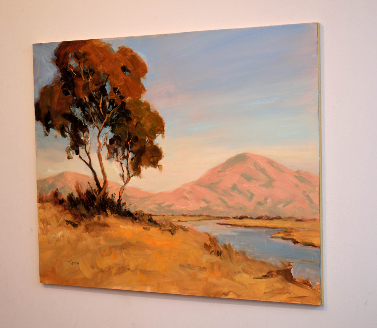 This is oil on cradled masonite board (half-inch deep cradle). I can be hung as-is, or framed if you prefer. It is currently priced as available unframed. An image of it framed is included for reference. The framed price is $3200.