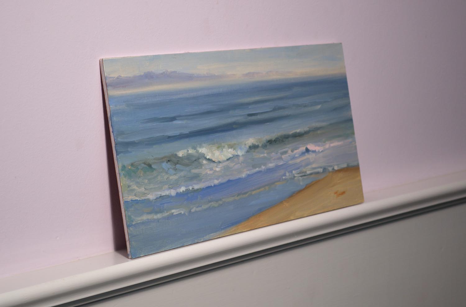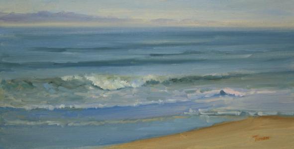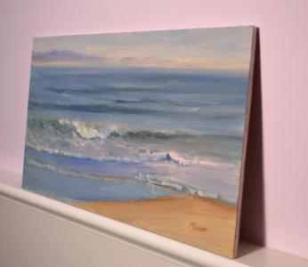I painted this piece in the morning along the Santa Barbara coast. The ocean was calm and soothing on this particular morning, with a beautiful quality to the light.