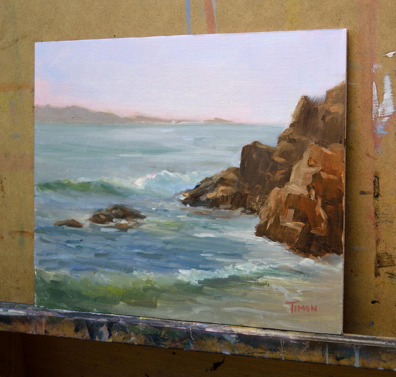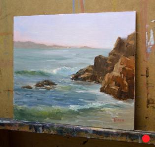 On a beautiful (but windy) day, I climbed down to the beach in this little leeward cove to get away from the wind. I found this lovely spot where I spent the day painting in short sleeves even though at the top of the bluffs it was windbreaker-like weather.