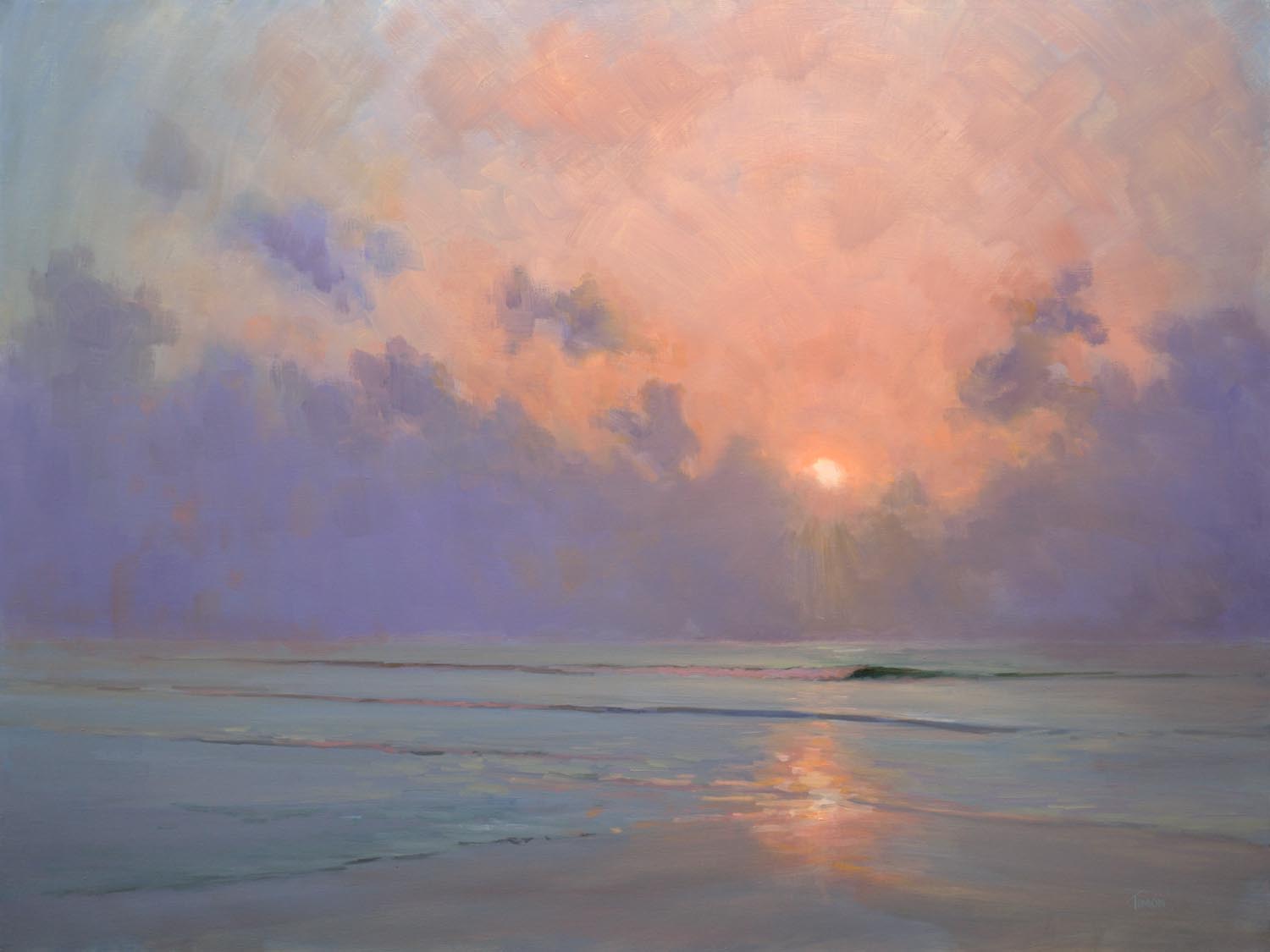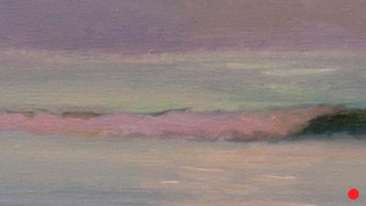 This is another in a series of paintings painted largely from memory after many years painting the ocean. These paintings are channeling my inner memories and emotions. Titled 'At Peace' because I was in a meditative state as I worked on this piece over many days building and refining the layers of paint that have resulted a a magical glow that emits from the canvas.