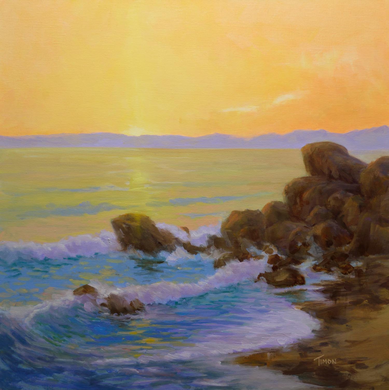Early morning just before the sun broke the horizon along the Carmel coast. Oil on linen wrapped on 1.5 inch deep stretchers with painted sides.