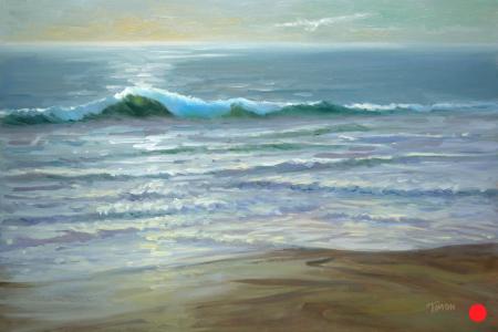 Oil on linen mounted on gatorboard. This piece is in a silver leaf frame.