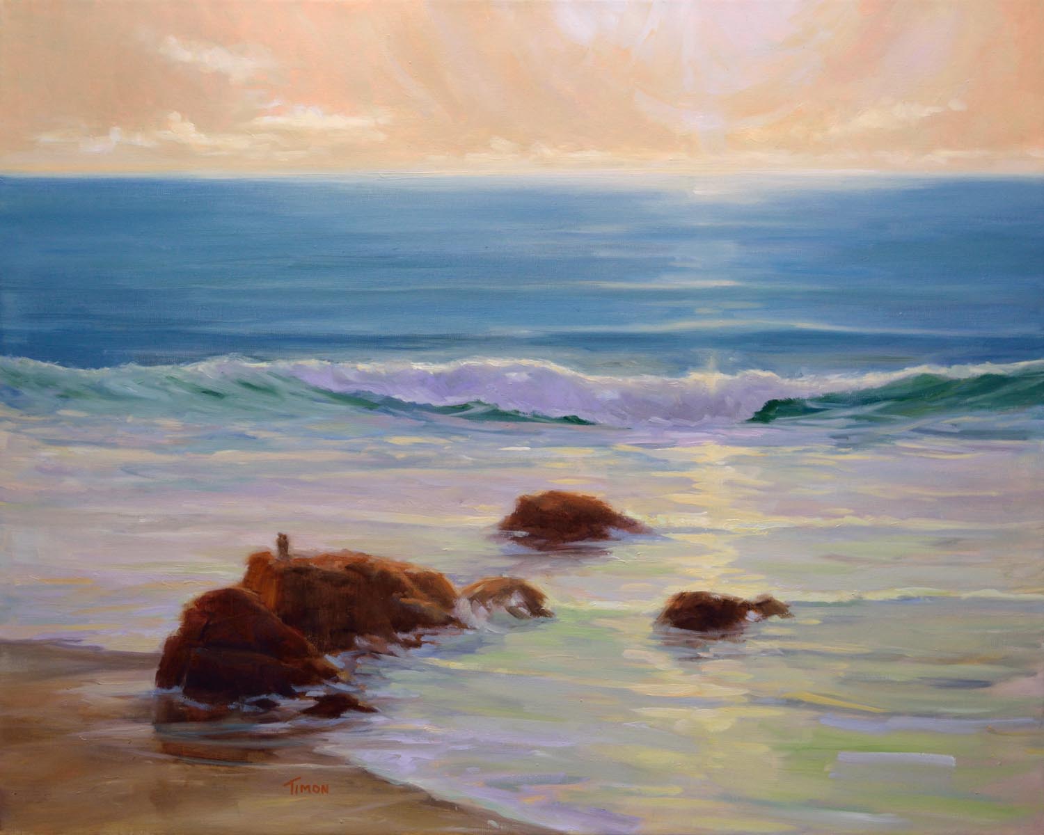 Oil on linen. Stretched on 1.5 inch deep stretcher bars with painted sides. Designed to be hung unframed.