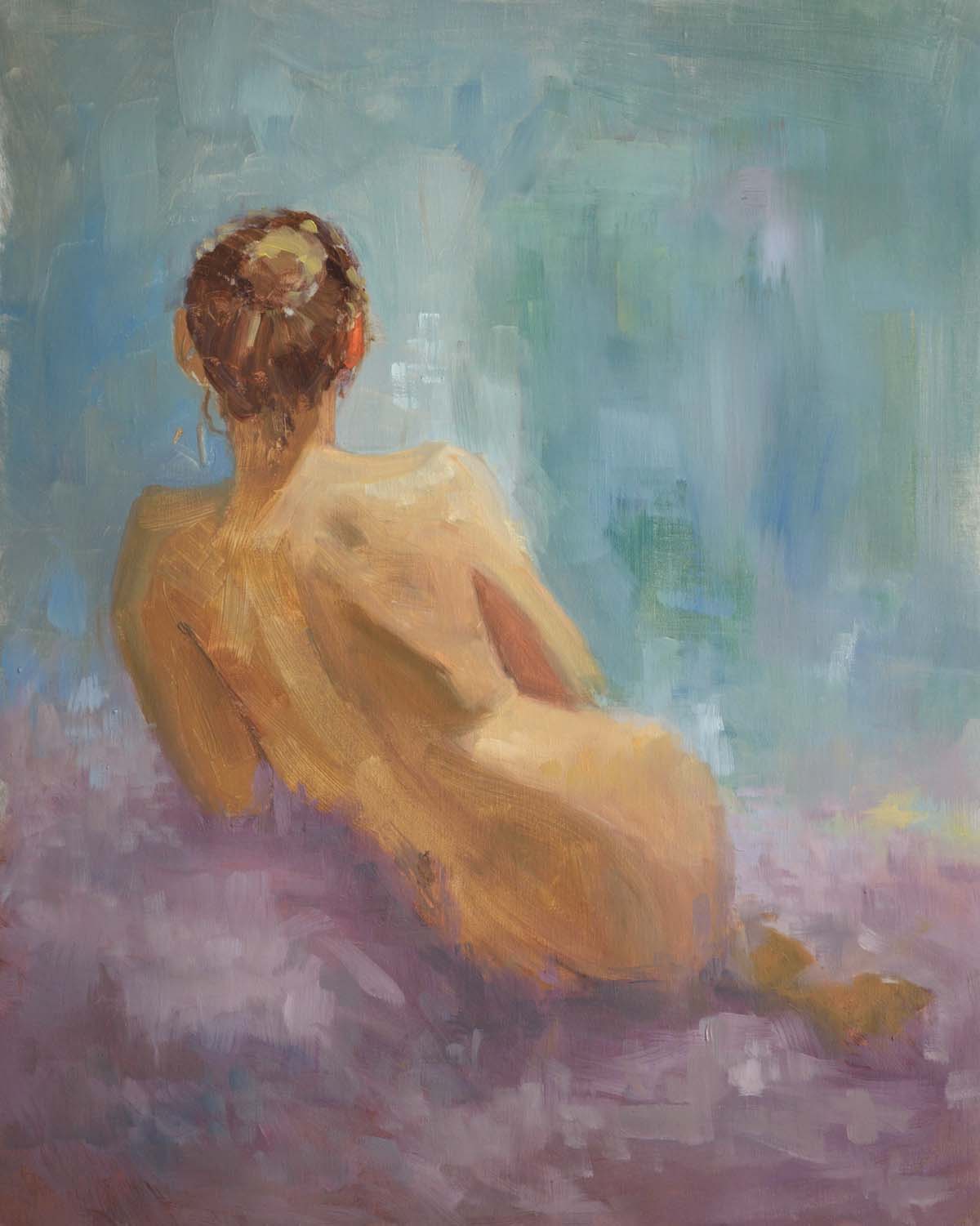 Oil on linen mounted on gatorboard. It is available unframed.